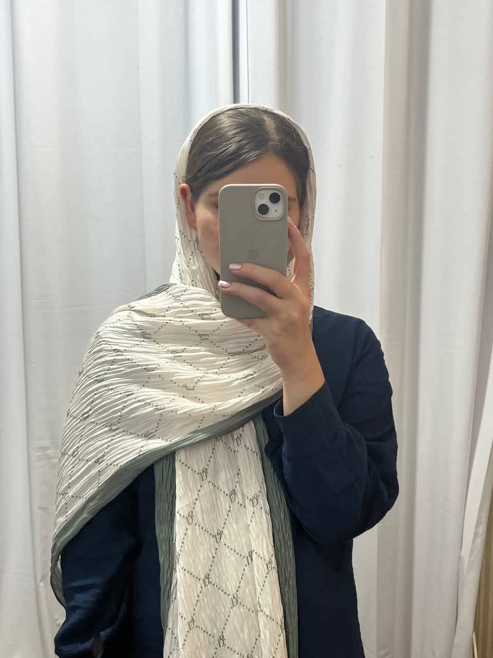 شال برشکا طرح دار زیتونی کرم